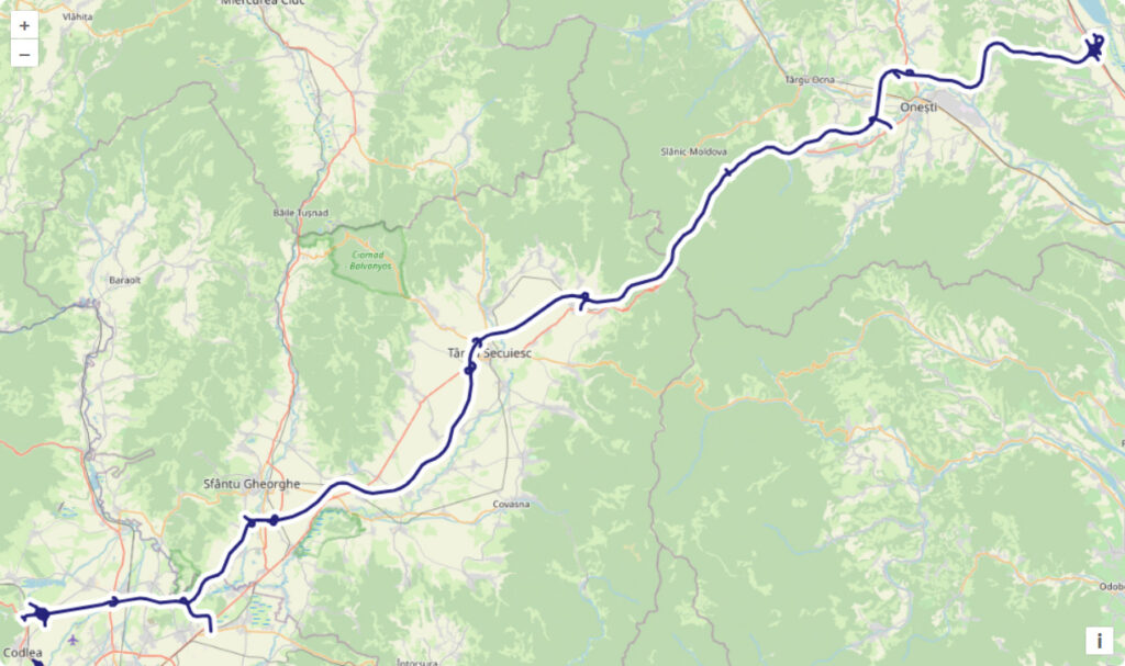 Cu o lungime estimată de 162 kilometri, Autostrada Brașov – Bacău se va conecta cu viitoarea Autostradă Sibiu-Făgăraș-Brașov printr-un nod de mare viteză în zona localității Codlea.