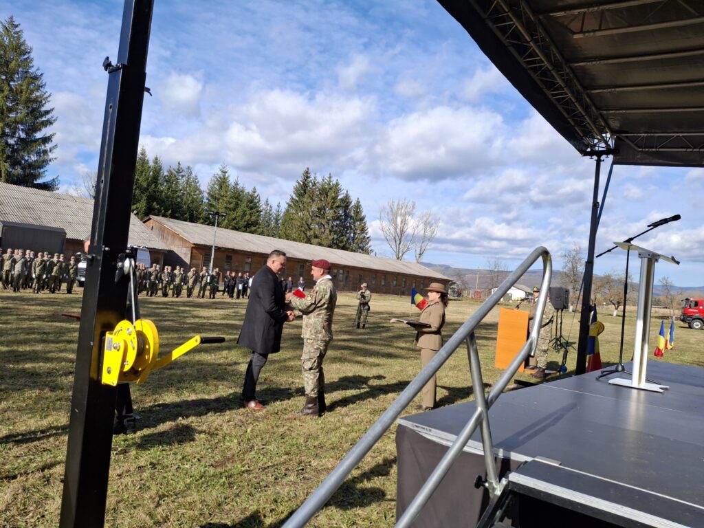 Mai exact trei soldați profesioniști, care au fost înaintați în termen la următorul grad – fruntaș – și șapte fruntași, gradați profesioniști, care pentru munca lor au fost recompensați, la propunerea comandantului. De ce? „Pentru că sunt oameni care, în momentul în care primesc o sarcină, ei încearcă să rezolve trei. Și a trebuit cumva să răsplătesc această motivație și acest spirit de echipă și efort susținut pe care îl depun permanent”, precizează col. Retea.