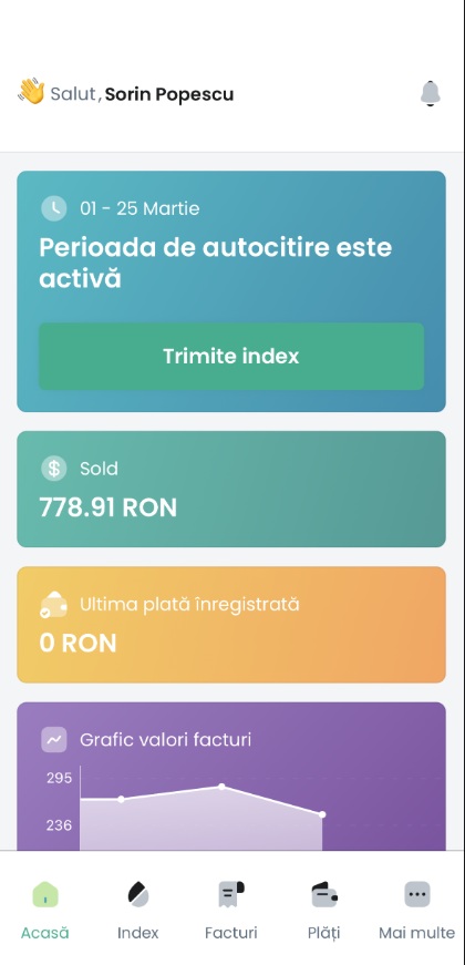 Aplicația permite și plata online a facturilor, atât cu cardul, cât și prin sistemele Apple Pay și Google Pay.