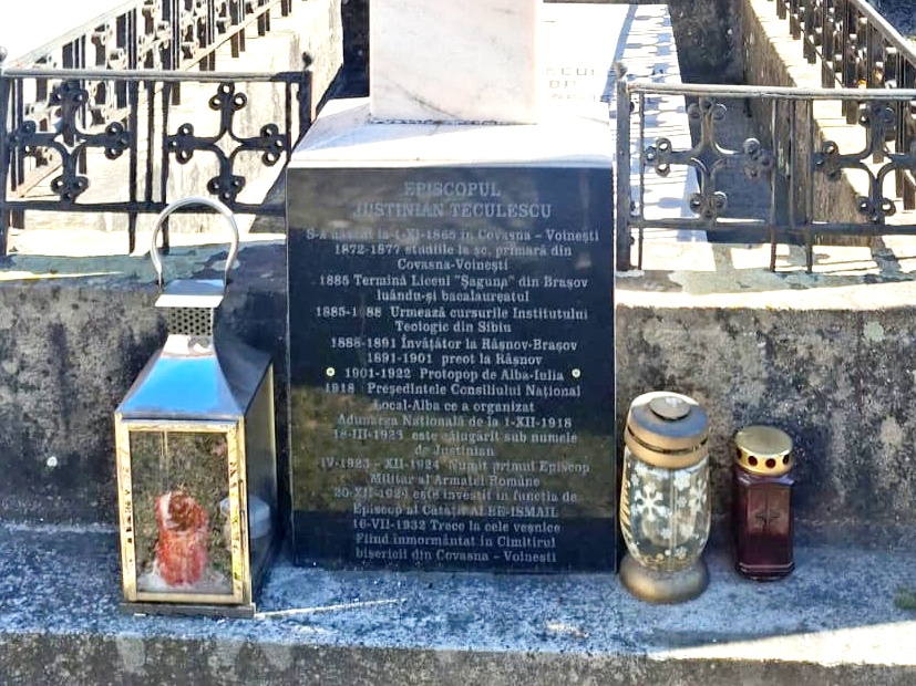 Teolog, general de armată, publicist, Justinian (Ioan) Teculescu s-a născut la Voinești-Covasna. A absolvit Institutul teologic din Sibiu și între anii 1888-1894 a fost învățător în Râșnov. S-a preoțit și a rămas în aceeași localitate, ca preot, până în 1901, an în care Mitropolia din Sibiu l-a desemnat protopop de Alba –Iulia. În 1918 a fost ales președinte al Consiliului Național Alba-Iulia și a jucat un rol important în organizarea Marii Adunări Naționale.