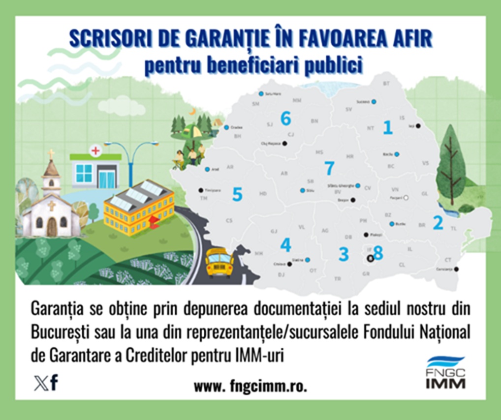 Fondul Național de Garantare a Creditelor pentru IMM-uri (FNGCIMM) sprijină direct comunitățile locale care derulează proiecte europene prin scrisori de garanție emise în favoarea Agenției pentru Finanțarea Investițiilor Rurale (AFIR). Acestea sunt reglementate prin OUG nr. 79/2009 și HG nr. 1262/2009 și asigură acces rapid la avansurile necesare demarării investițiilor.