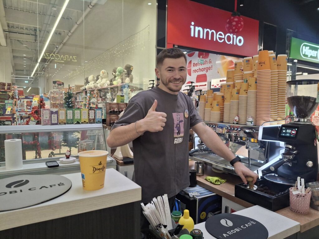 Molnár Róbert. barista la Robi Cafe din Sepsi Value Center.