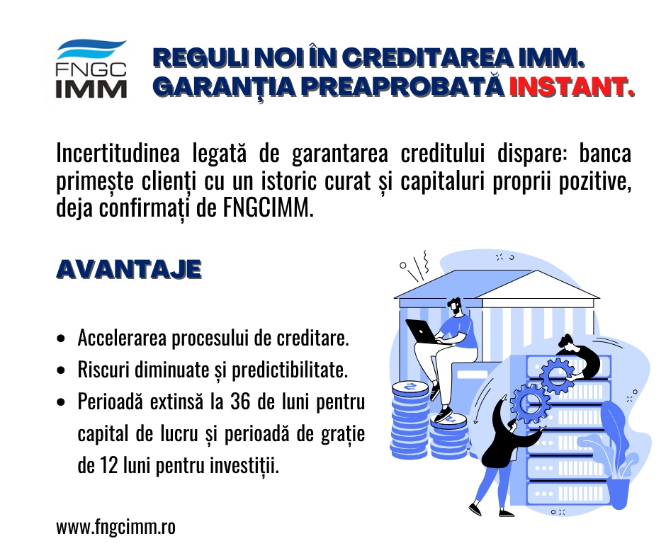 Într-o perioadă în care accesul la finanțare devine esențial pentru supraviețuire și dezvoltare, dar totodată mai dificil din cauza condițiilor economice, FNGCIMM urmează să lanseze în acest an, noi soluții de finanțate garantată pentru a veni în întâmpinarea nevoilor mediului de afaceri.