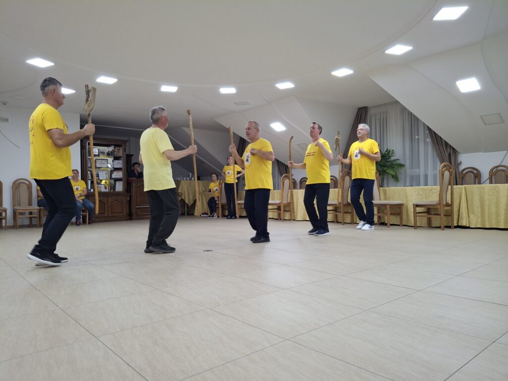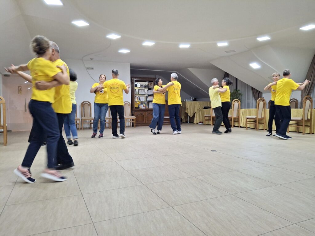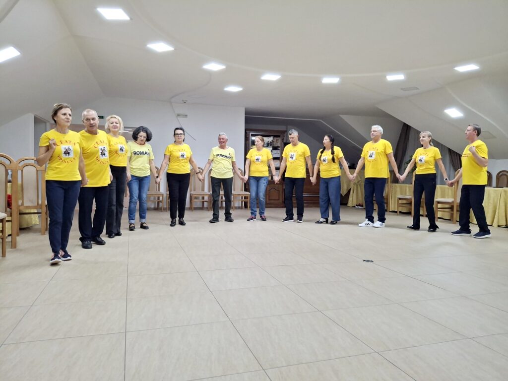 Am vrut să vedem ce fac și cum e la repetițiile lor. I-am găsit dansând într-o sală mare, la ultimul etaj din clădirea Afacov, din centrul municipiului Sfântu Gheorghe. Erau în tricouri galbene, personalizate, concentrați pe ce au de făcut, dar veseli și plini de umor…