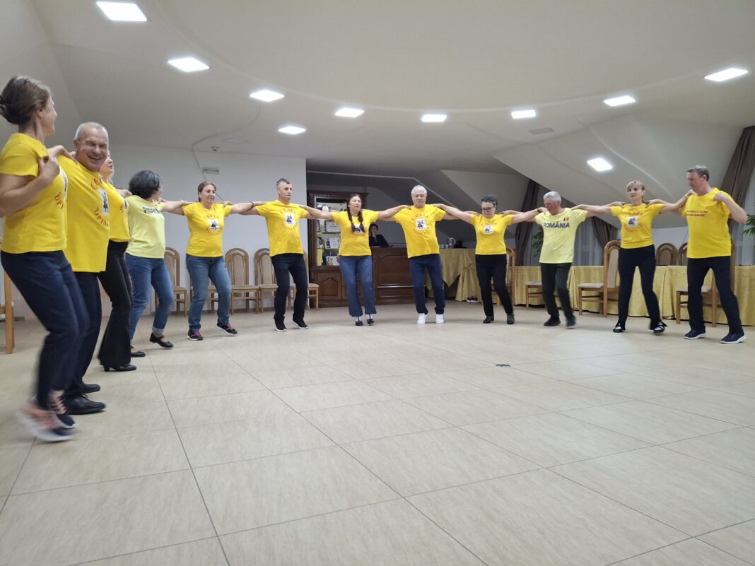 Am vrut să vedem ce fac și cum e la repetițiile lor. I-am găsit dansând într-o sală mare, la ultimul etaj din clădirea Afacov, din centrul municipiului Sfântu Gheorghe. Erau în tricouri galbene, personalizate, concentrați pe ce au de făcut, dar veseli și plini de umor…