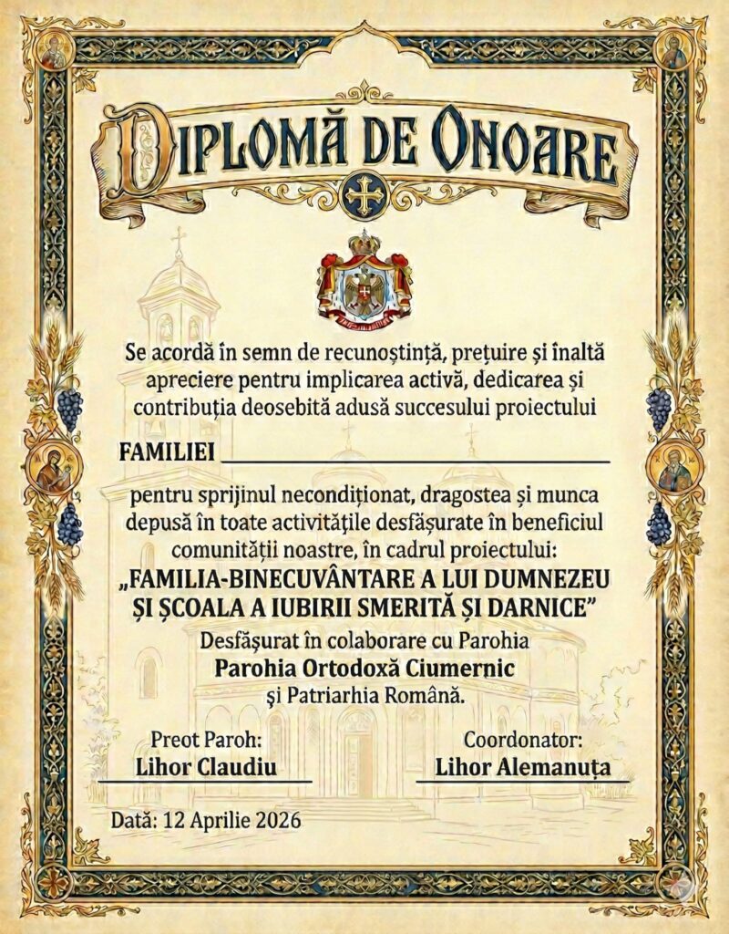 „Astăzi, familia creștină nu este doar o definiție juridică rece, ci este spațiul binecuvântat unde copilul începe să înțeleagă taina iubirii lui Dumnezeu. Însă, nu putem ignora provocările: abandonul, divorțul, violența și, mai ales, sclavia digitală și adicțiile care ne înstrăinează. Proiectul nostru, desfășurat împreună cu doamna profesor Lihor Alemănuța-Sorina, dorește să ofere tinerilor noștri nu doar informații, ci o experiență de trăire”, anunța părintele Claudiu Lihor, la începutul proiectului.