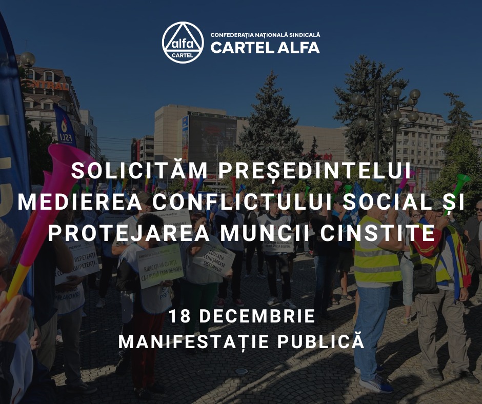 Solicităm Președintelui României să își exercite rolul constituțional de mediator și să contribuie activ la deblocarea conflictului social, în interesul cetățenilor și al statului român”.
