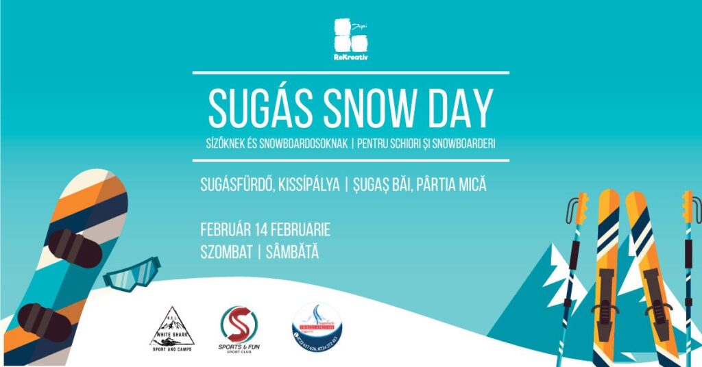 Iubitorii de sporturi de iarnă sunt așteptați mâine la Șugaș Băi, la „Ziua zăpezii” – Sugas Snow Day, de la ora 15.00. Duminică are loc Memorialului „Dani Kinga” – ediția a XI-a, organizat de Asociația Sportivă Alpin Sport.
